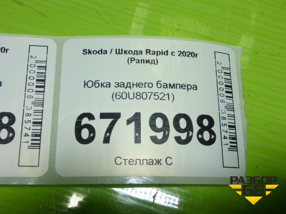 Юбка заднего бампера (60U807521) для Skoda Rapid с 2020г (Рапид) в Москве
