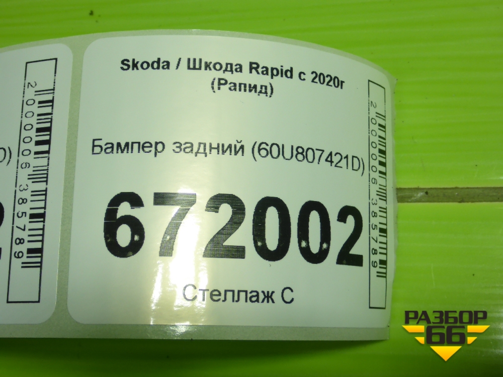 Бампер задний (60U807421D) для Skoda Rapid с 2020г (Рапид) в Москве
