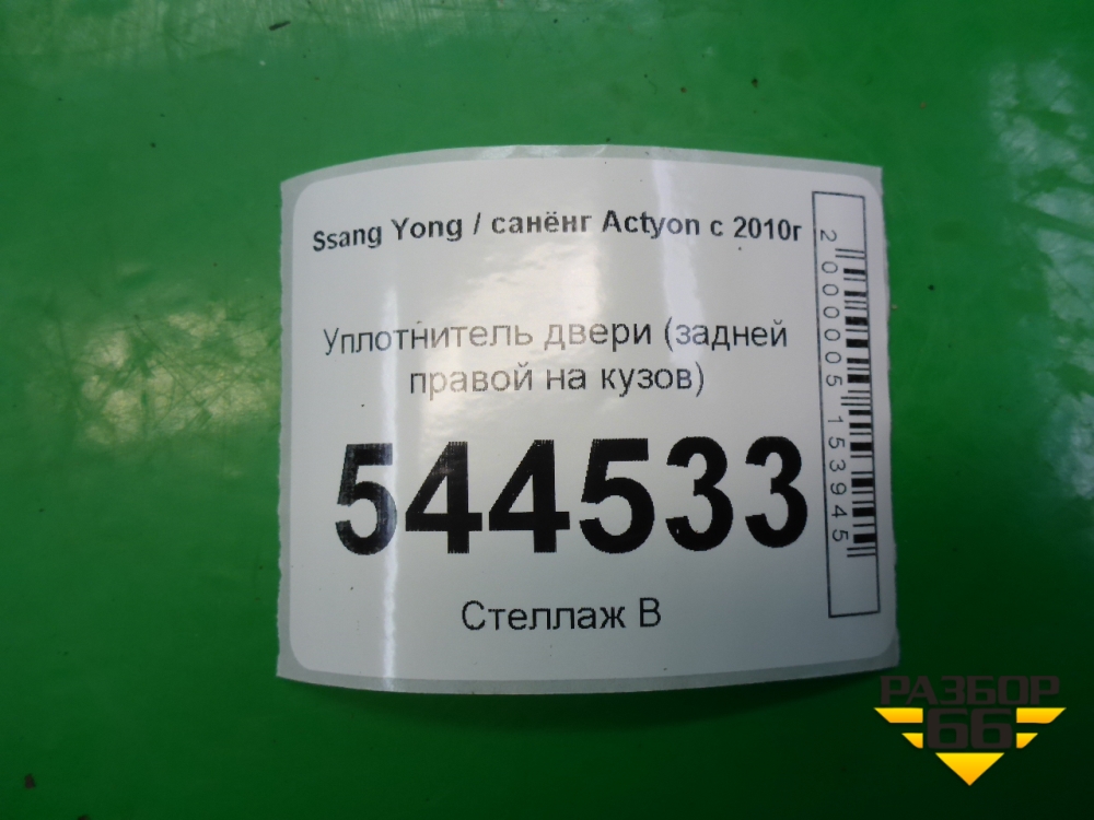 Уплотнитель двери (задней правой на кузов) для Ssang Yong Actyon с 2010г (Актион) в Москве