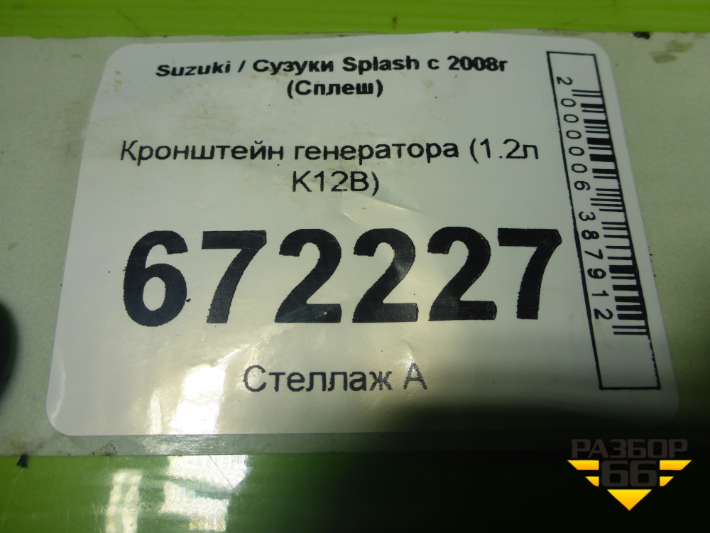 Кронштейн генератора (1.2л K12B) для Suzuki Splash с 2008г (Сплеш) в Москве