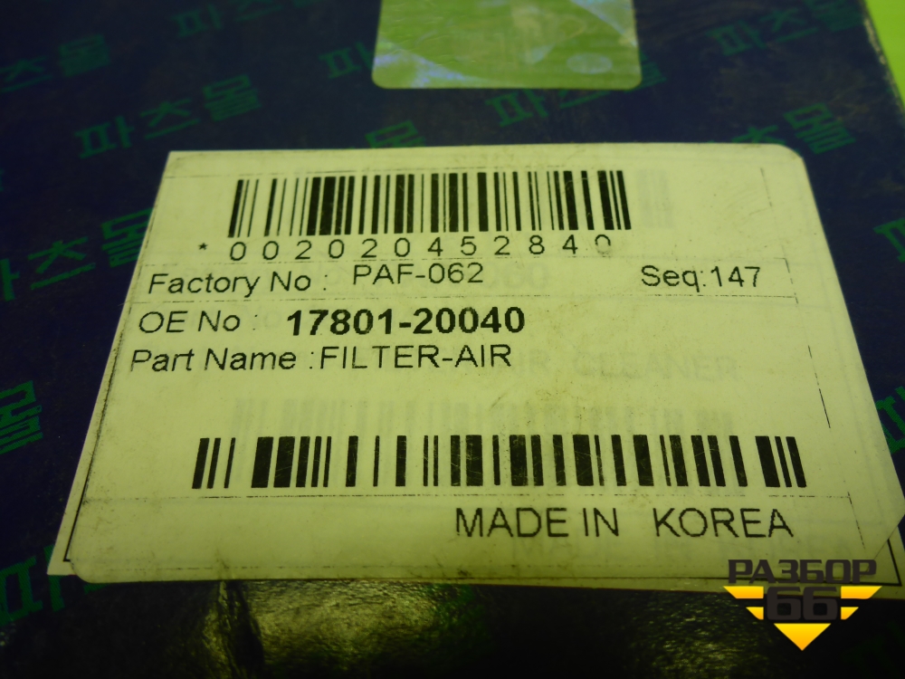 Фильтр воздушный (PAF062) для Toyota Camry V40 с 2006-2011г (Камри) в Москве