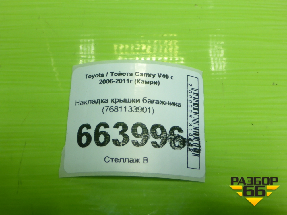 Накладка крышки багажника (7681133901) для Toyota Camry V40 с 2006-2011г (Камри) в Москве