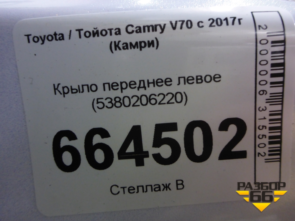 Крыло переднее левое (5380206220) для Toyota Camry V70 с 2017г (Камри) в Москве