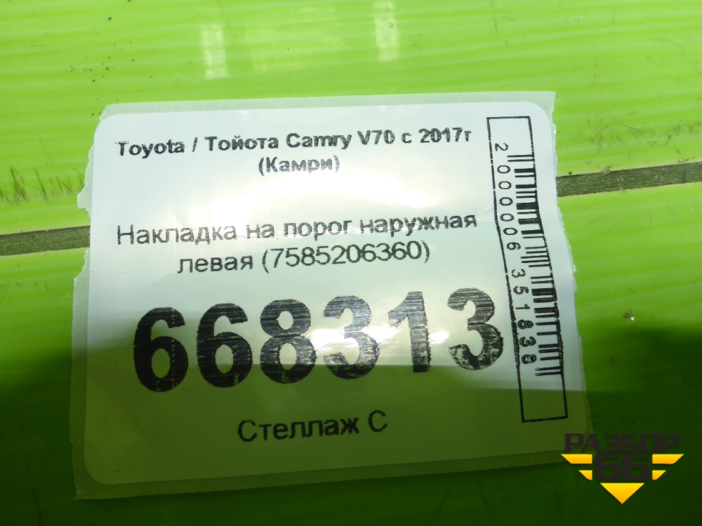 Накладка на порог наружная левая (7585206360) для Toyota Camry V70 с 2017г (Камри) в Москве