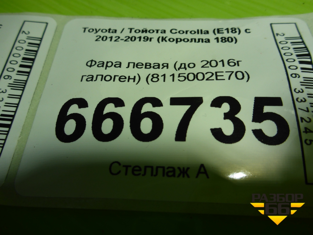 Фара левая (до 2016г галоген) (8115002E70) для Toyota Corolla (E18) с 2012-2019г (Королла 180) в Москве