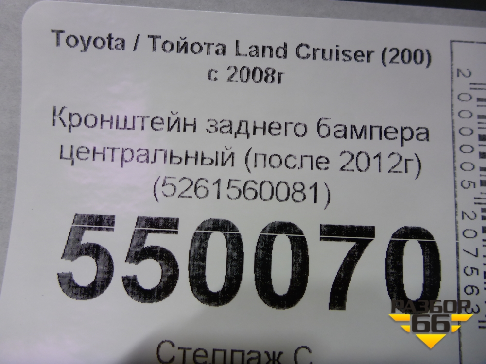 Кронштейн заднего бампера центральный (после 2012г) (5261560081) для Toyota Land Cruiser (200) с 2008г (Ленд Крузер) в Москве