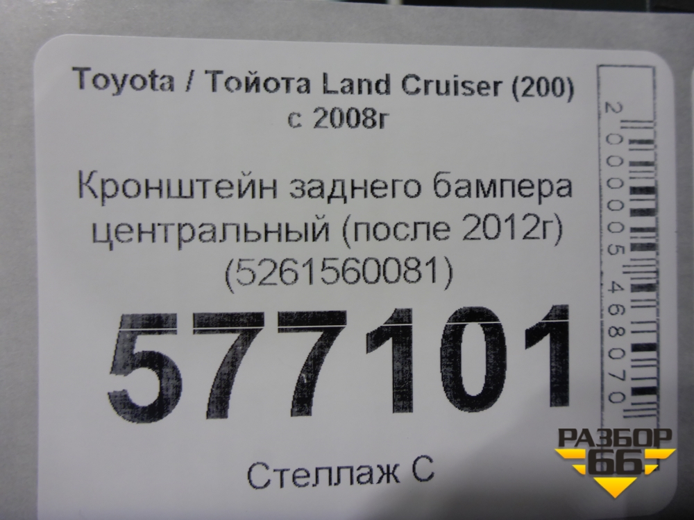 Кронштейн заднего бампера центральный (после 2012г) (5261560081) для Toyota Land Cruiser (200) с 2008г (Ленд Крузер) в Москве
