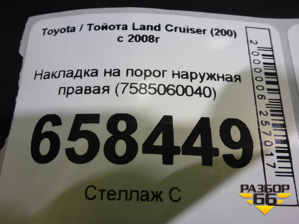 Накладка на порог наружная правая (7585060040) для Toyota Land Cruiser (200) с 2008г (Ленд Крузер) в Москве