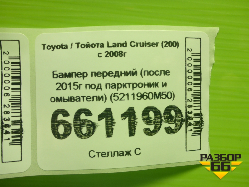 Бампер передний (после 2015г под парктроник и омыватели) (5211960M50) для Toyota Land Cruiser (200) с 2008г (Ленд Крузер) в Москве