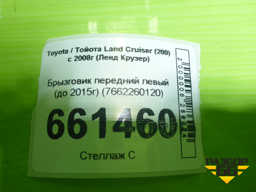 Брызговик передний левый (до 2015г) (7662260120) для Toyota Land Cruiser (200) с 2008г (Ленд Крузер) в Москве