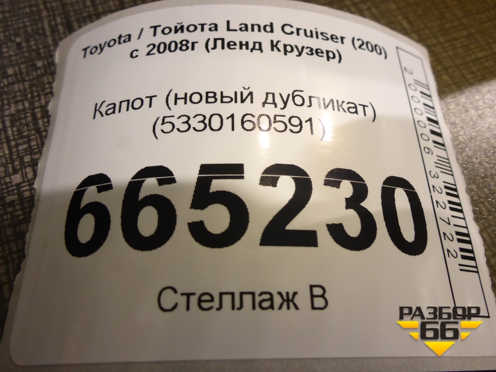Капот (новый дубликат) (5330160591) для Toyota Land Cruiser (200) с 2008г (Ленд Крузер) в Москве