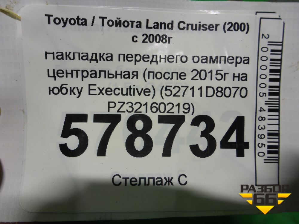 Накладка переднего бампера центральная (после 2015г на юбку Executive) (52711D8070 PZ32160219) для Toyota Land Cruiser (200) с 2008г (Ленд Крузер) в Москве