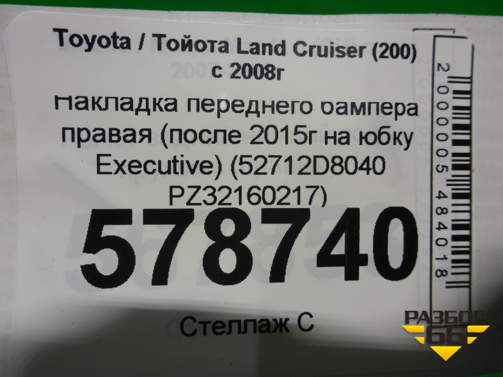 Накладка переднего бампера правая (после 2015г на юбку Executive) (52712D8040 PZ32160217) для Toyota Land Cruiser (200) с 2008г (Ленд Крузер) в Москве