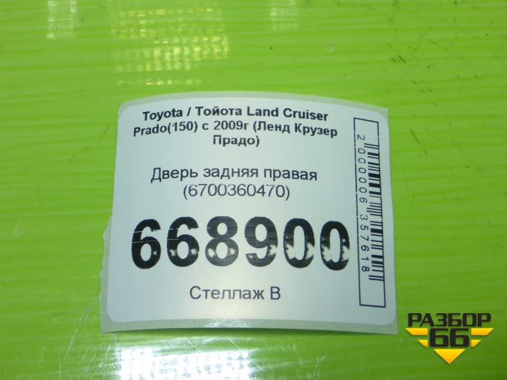 Дверь задняя правая (6700360470) для Toyota Land Cruiser Prado(150) с 2009г (Ленд Крузер Прадо) в Москве