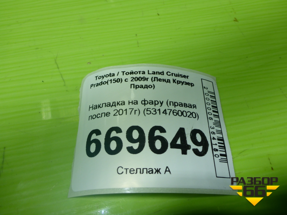 Накладка на фару (правая после 2017г) (5314760020) для Toyota Land Cruiser Prado(150) с 2009г (Ленд Крузер Прадо) в Москве
