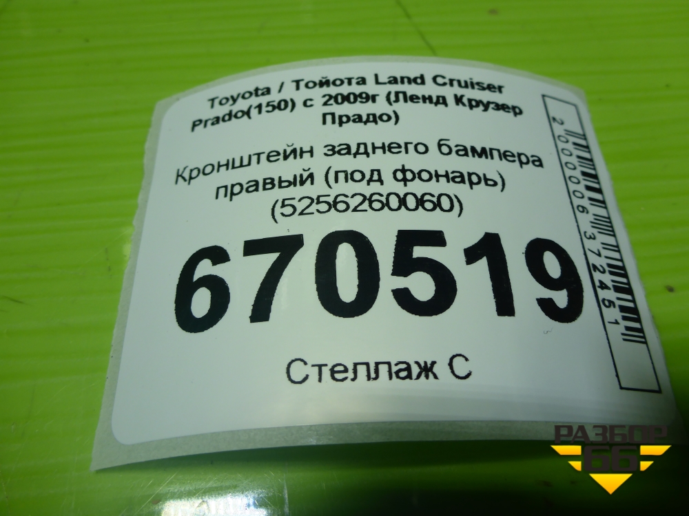 Кронштейн заднего бампера правый (под фонарь) (5256260060) для Toyota Land Cruiser Prado(150) с 2009г (Ленд Крузер Прадо) в Москве