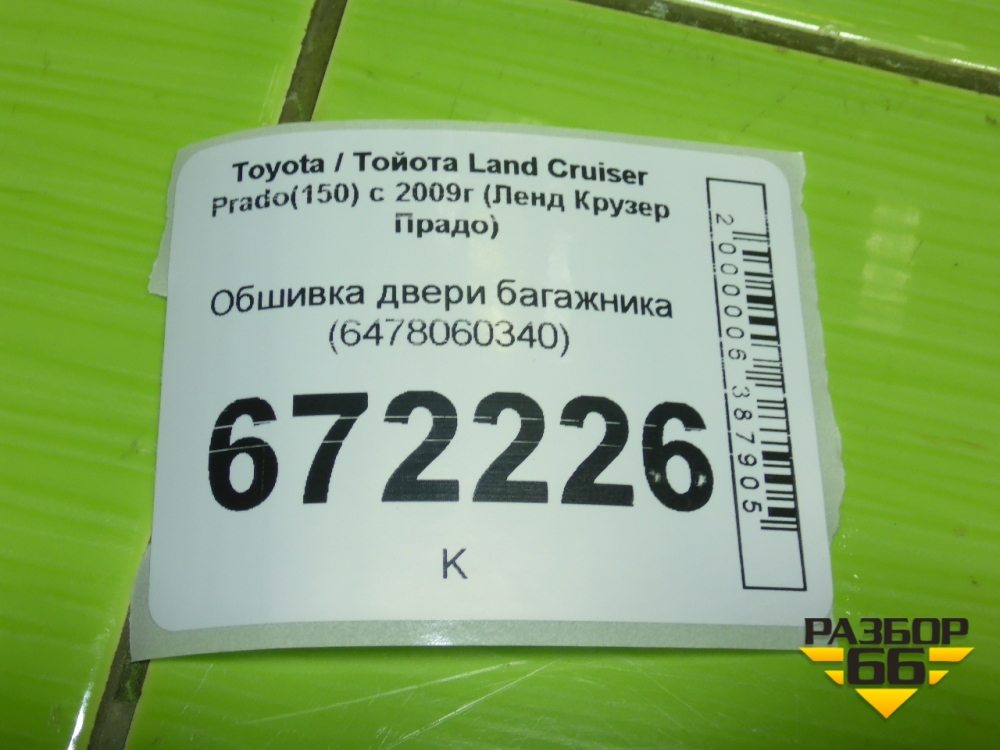 Обшивка двери багажника (6478060340) для Toyota Land Cruiser Prado(150) с 2009г (Ленд Крузер Прадо) в Москве