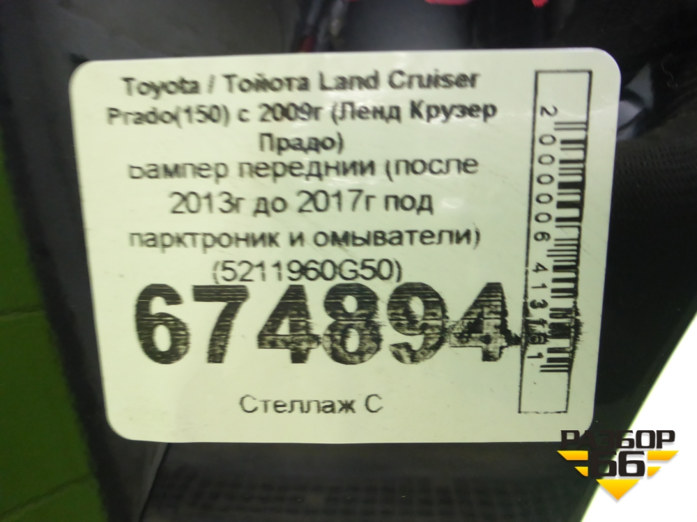 Бампер передний (после 2013г до 2017г под парктроник и омыватели) (5211960G50) для Toyota Land Cruiser Prado(150) с 2009г (Ленд Крузер Прадо) в Москве