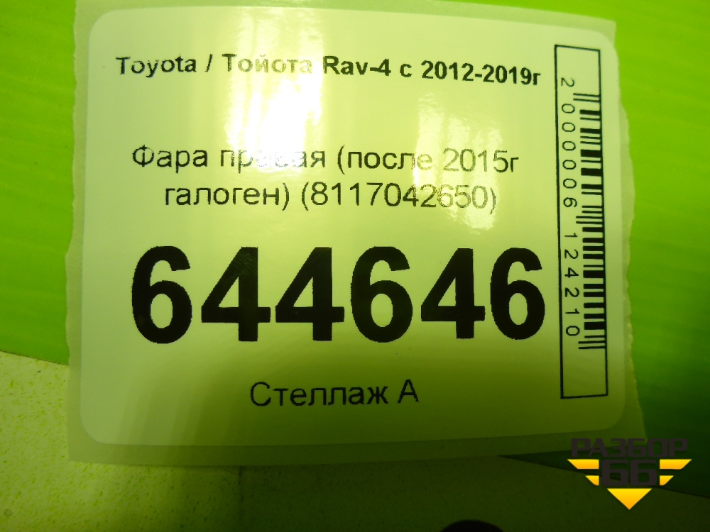 Фара правая (после 2015г галоген) (8117042650) для Toyota Rav-4 с 2012-2019г (Рав 4) в Москве