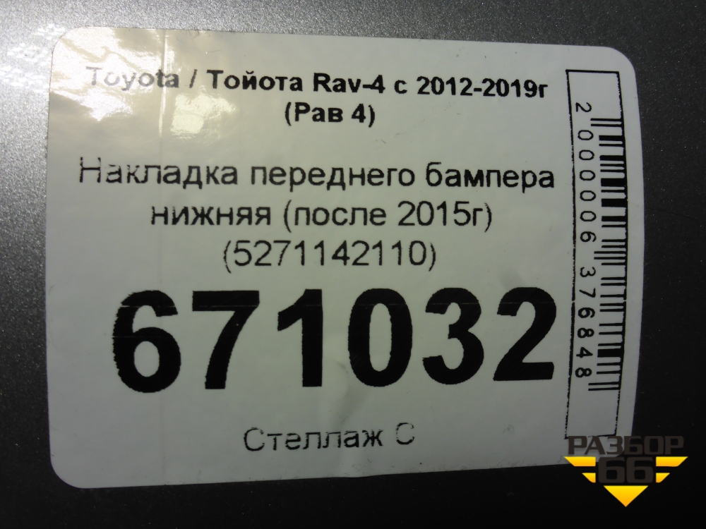 Накладка переднего бампера нижняя (после 2015г) (5271142110) для Toyota Rav-4 с 2012-2019г (Рав 4) в Москве