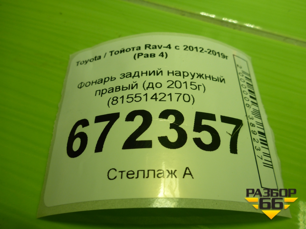 Фонарь задний наружный правый (до 2015г) (8155142170) для Toyota Rav-4 с 2012-2019г (Рав 4) в Москве