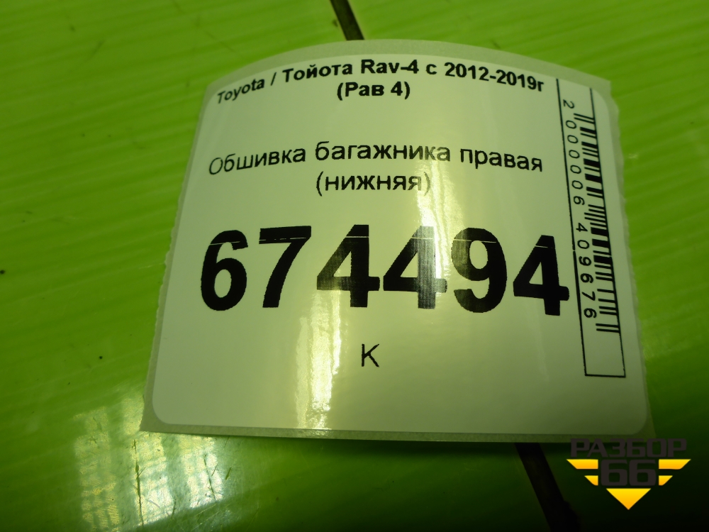 Обшивка багажника правая (нижняя) (6473042092) для Toyota Rav-4 с 2012-2019г (Рав 4) в Москве
