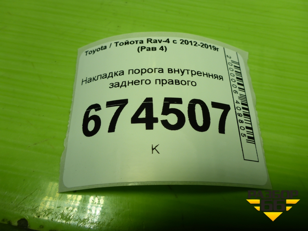 Накладка порога внутренняя заднего правого (6791742070) для Toyota Rav-4 с 2012-2019г (Рав 4) в Москве