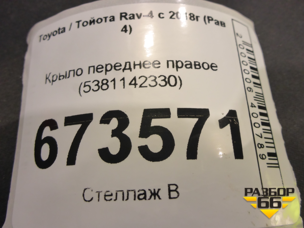Крыло переднее правое (5381142330) для Toyota Rav-4 с 2018г (Рав 4) в Москве