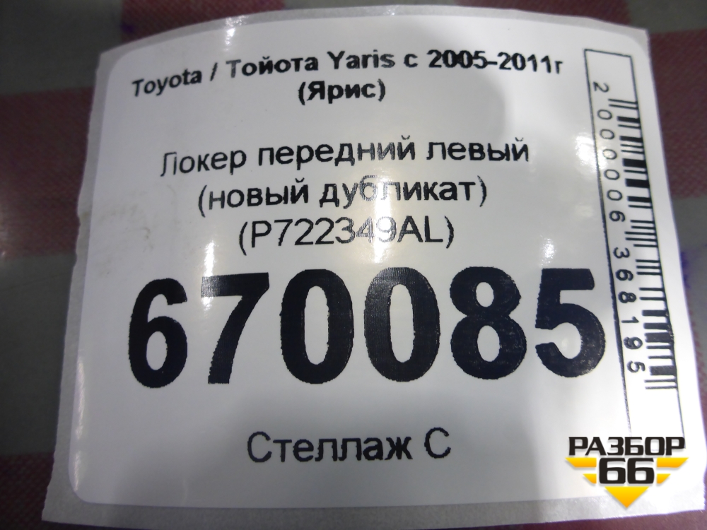Локер передний левый (новый дубликат) (P722349AL) для Toyota Yaris с 2005-2011г (Ярис) в Москве