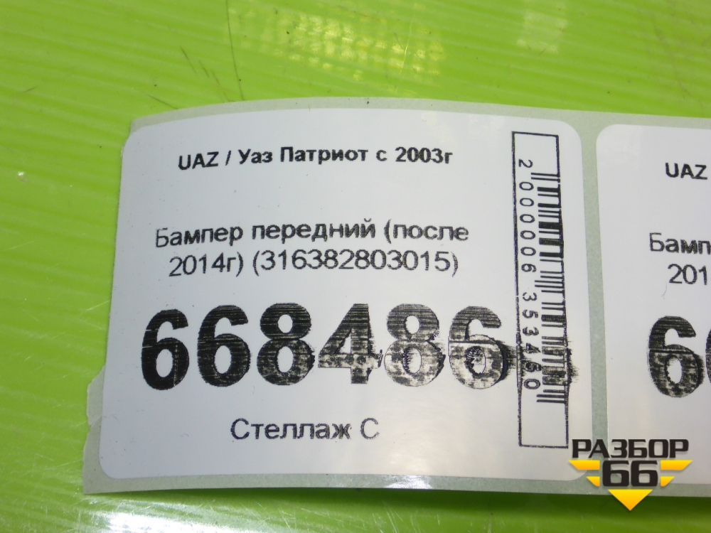 Бампер передний (после 2014г) (316382803015) для UAZ Патриот с 2003г в Москве