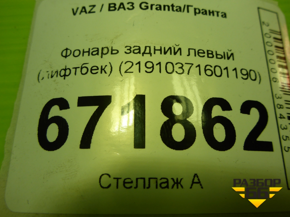Фонарь задний левый (лифтбек) (21910371601190) для VAZ Granta/Гранта в Москве