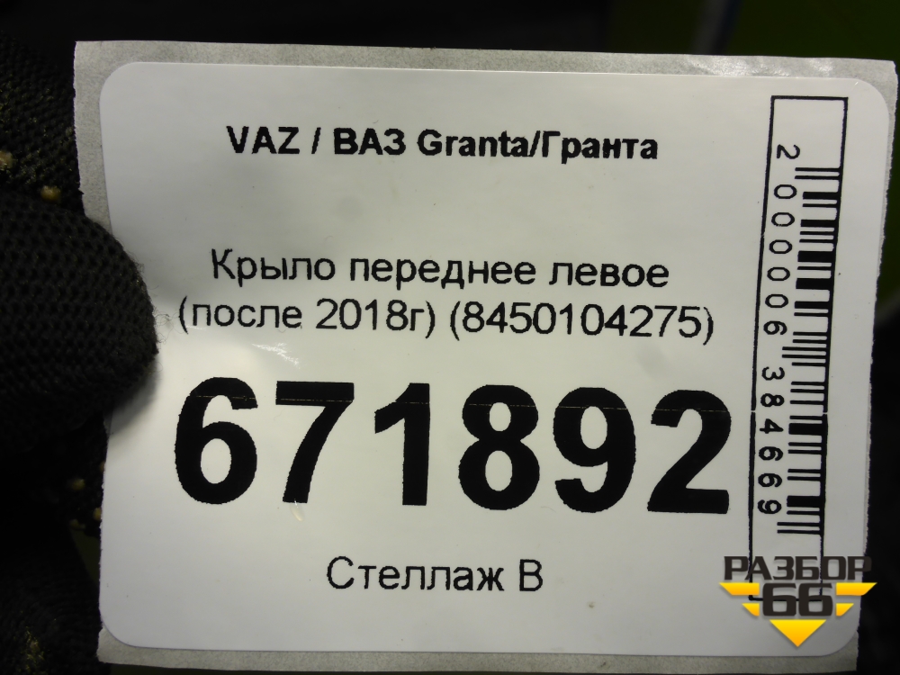 Крыло переднее левое (после 2018г) (8450104275) для VAZ Granta/Гранта в Москве