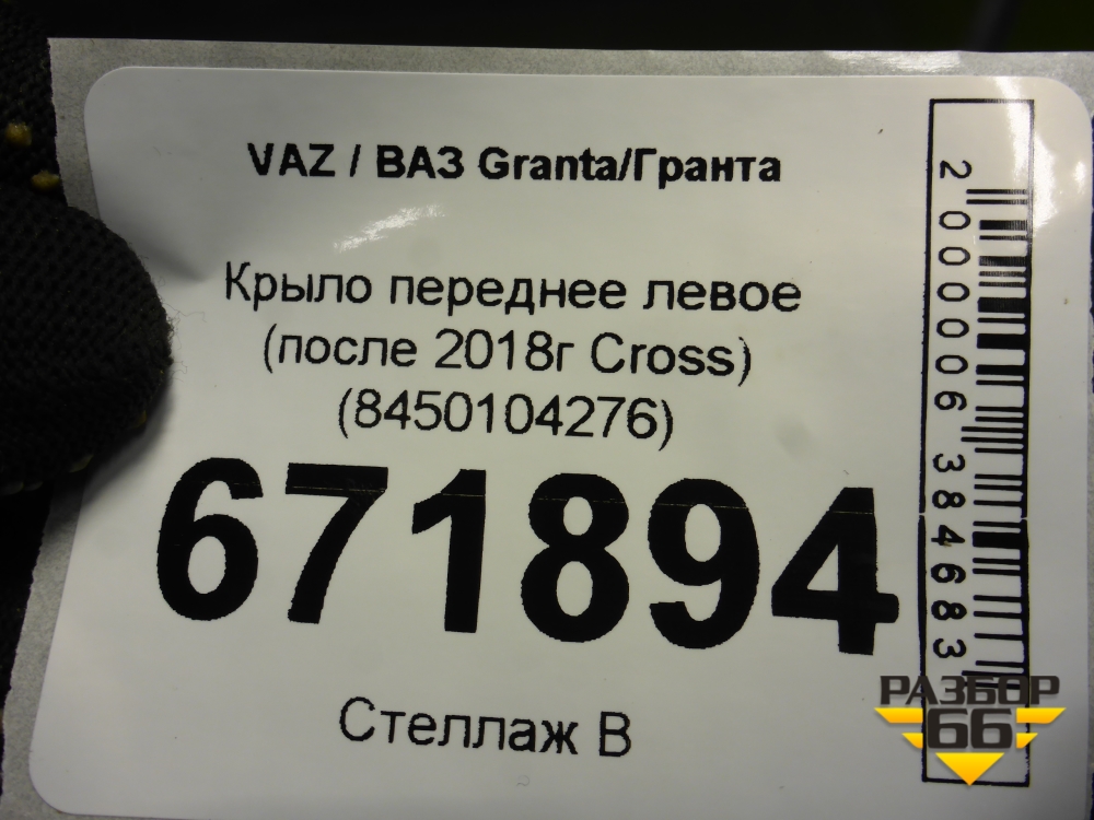 Крыло переднее левое (после 2018г Cross) (8450104276) для VAZ Granta/Гранта в Москве