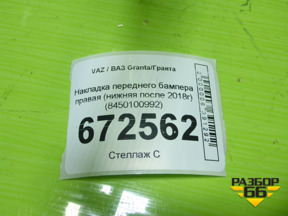 Накладка переднего бампера правая (нижняя после 2018г) (8450100992) для VAZ Granta/Гранта в Москве