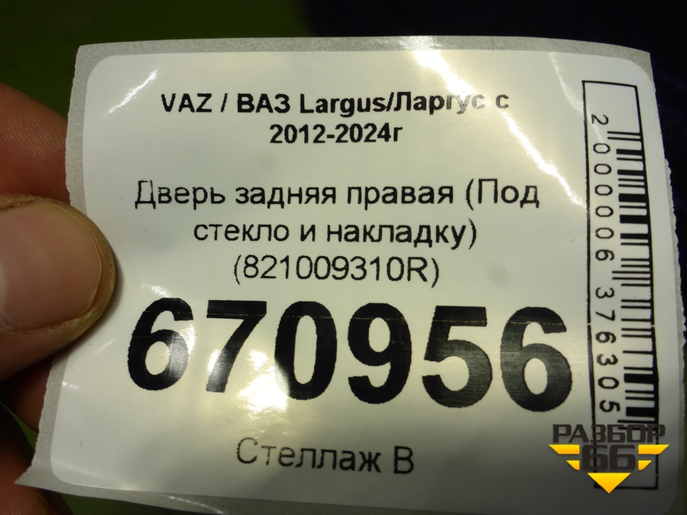 Дверь задняя правая (Под стекло и накладку) (821009310R) для VAZ Largus/Ларгус с 2012-2024г в Москве