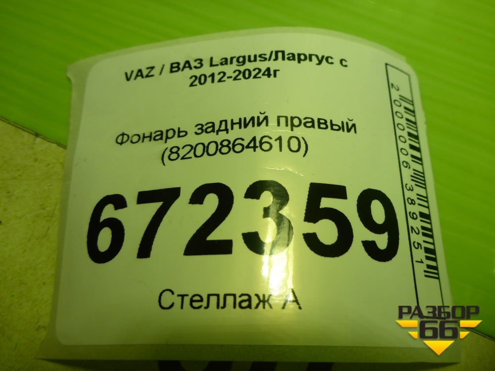 Фонарь задний правый (8200864610) для VAZ Largus/Ларгус с 2012-2024г в Москве