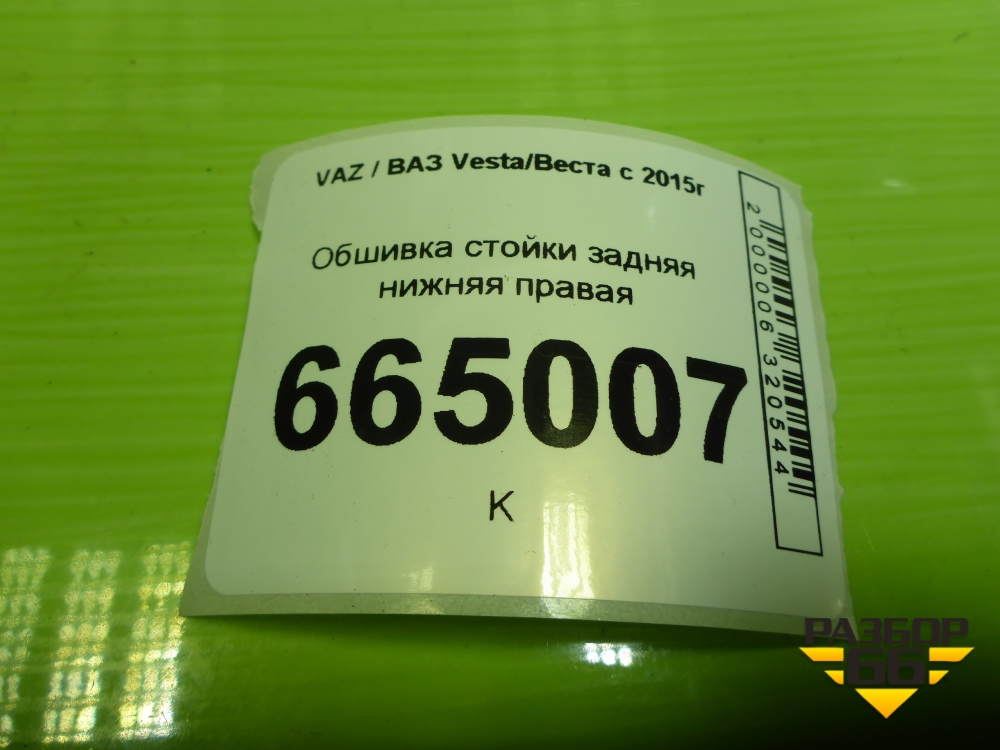 Обшивка стойки задняя нижняя правая (8450008578) для VAZ Vesta/Веста с 2015г в Москве