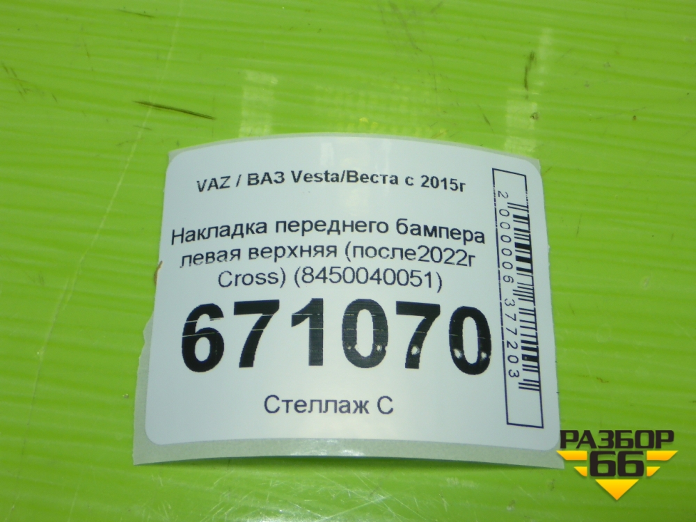 Накладка переднего бампера левая верхняя (после2022г Cross) (8450040051) для VAZ Vesta/Веста с 2015г в Москве