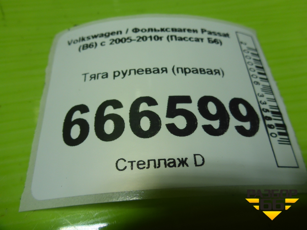 Тяга рулевая (правая) для Volkswagen Passat (B6) с 2005-2010г (Пассат Б6) в Москве