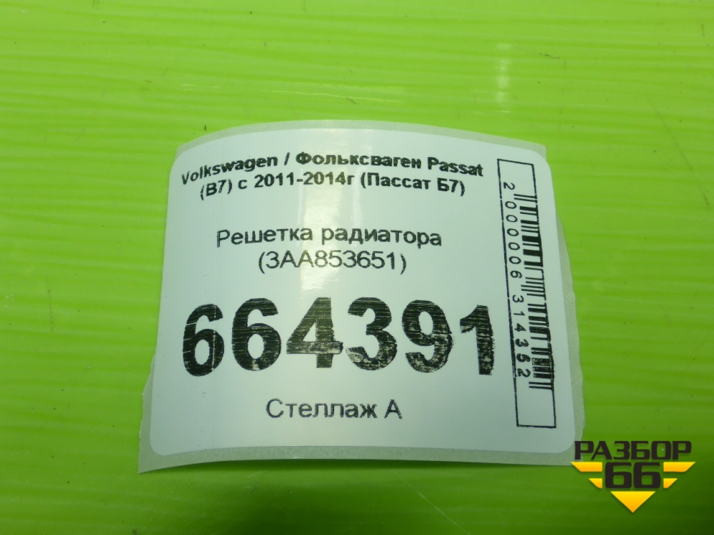 Решетка радиатора (3AA853651) для Volkswagen Passat (В7) с 2011-2014г (Пассат Б7) в Москве
