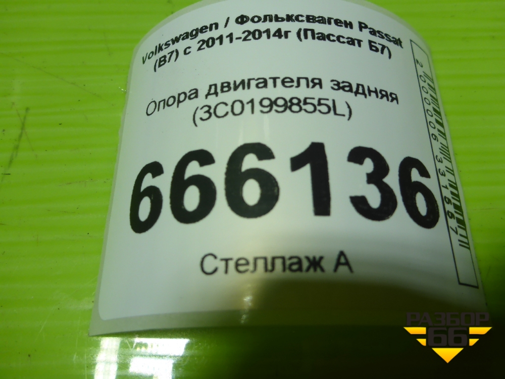 Опора двигателя задняя (3C0199855L) для Volkswagen Passat (В7) с 2011-2014г (Пассат Б7) в Москве
