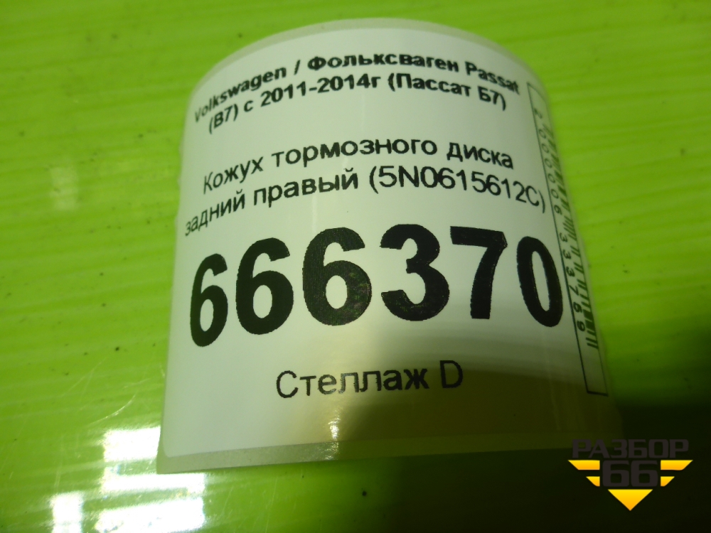 Кожух тормозного диска задний правый (5N0615612C) для Volkswagen Passat (В7) с 2011-2014г (Пассат Б7) в Москве