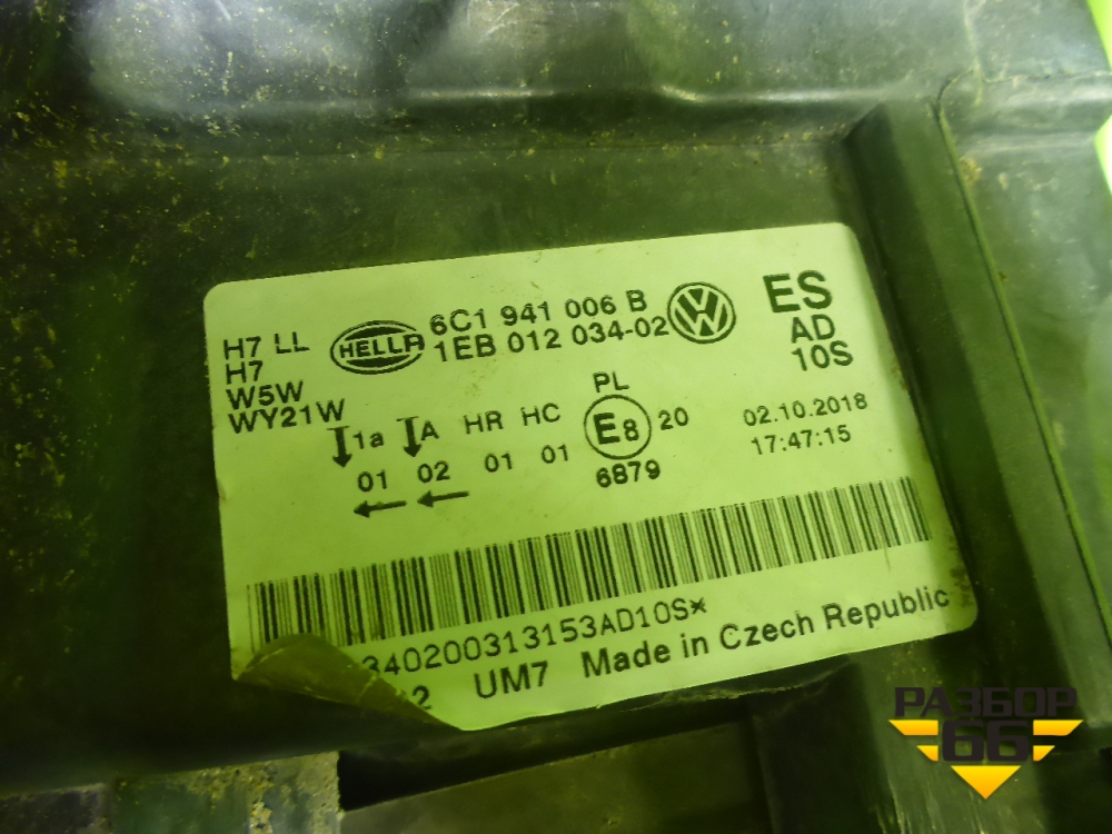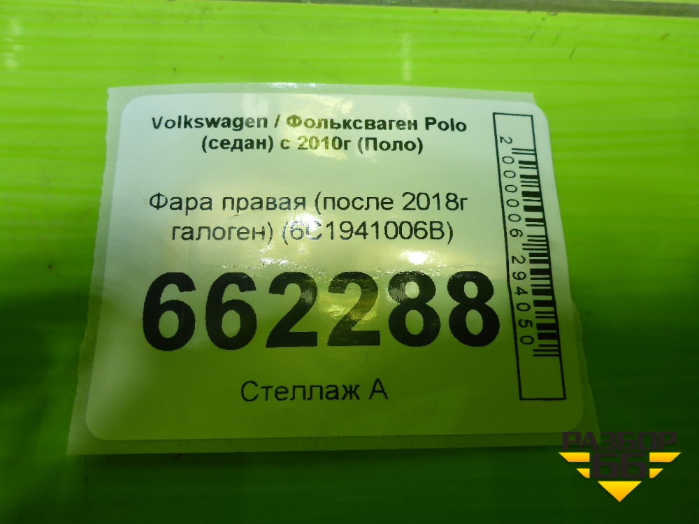Фара правая (после 2018г галоген) (6C1941006B) для Volkswagen Polo (седан) с 2010г (Поло) в Москве