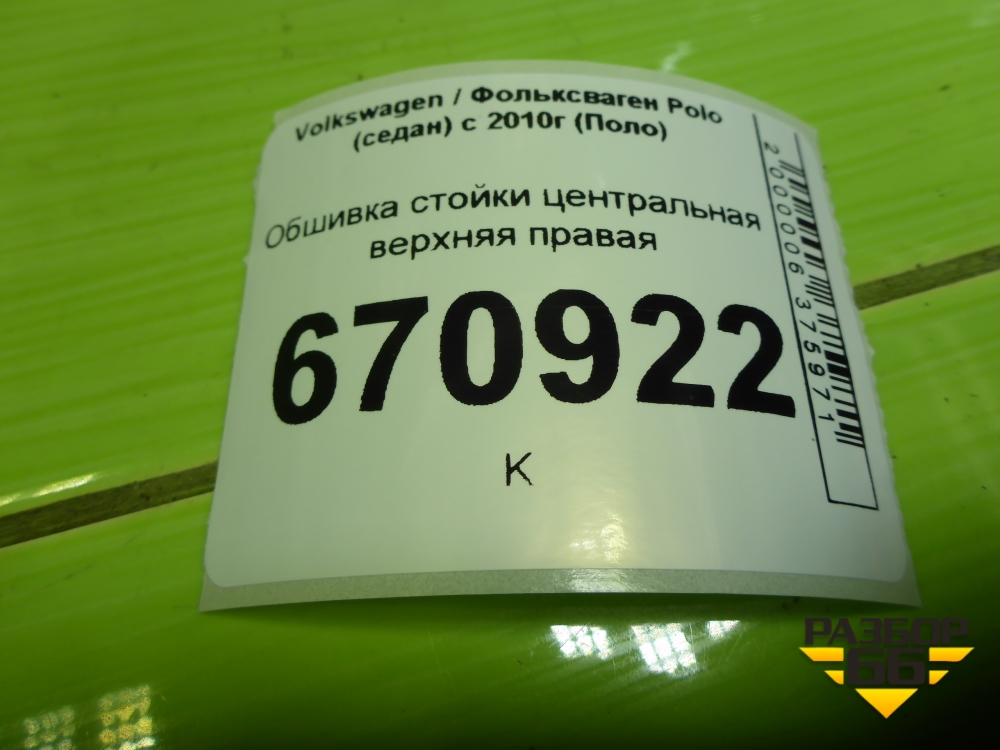 Обшивка стойки центральная верхняя правая (6RU867244E) для Volkswagen Polo (седан) с 2010г (Поло) в Москве