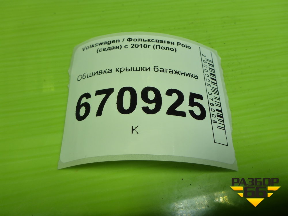 Обшивка крышки багажника (6RU867605) для Volkswagen Polo (седан) с 2010г (Поло) в Москве