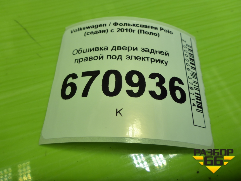Обшивка двери задней правой под электрику (6RU867212) для Volkswagen Polo (седан) с 2010г (Поло) в Москве