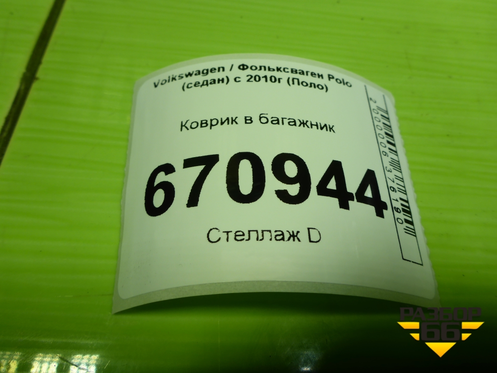 Коврик в багажник для Volkswagen Polo (седан) с 2010г (Поло) в Москве