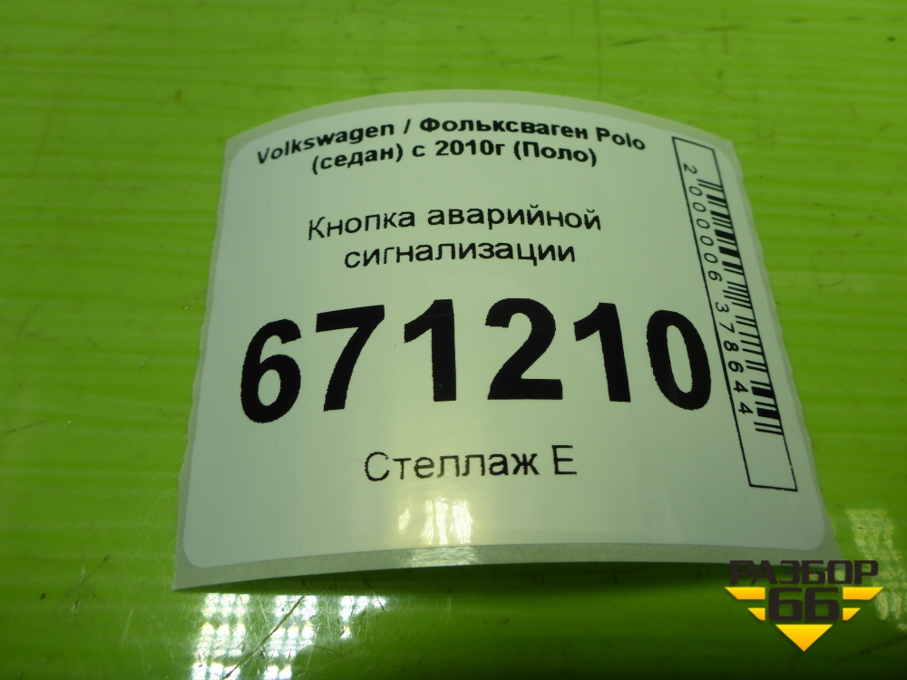 Кнопка аварийной сигнализации (6R0953509B) для Volkswagen Polo (седан) с 2010г (Поло) в Москве