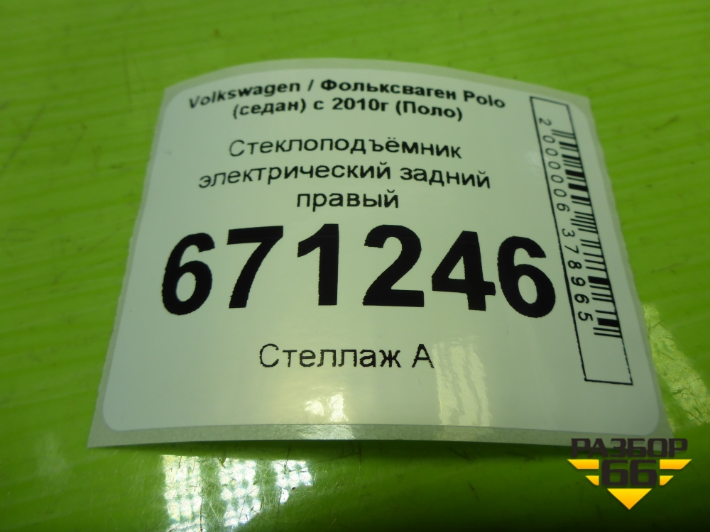 Стеклоподъёмник электрический задний правый (без моторчика) (6RU839462E) для Volkswagen Polo (седан) с 2010г (Поло) в Москве