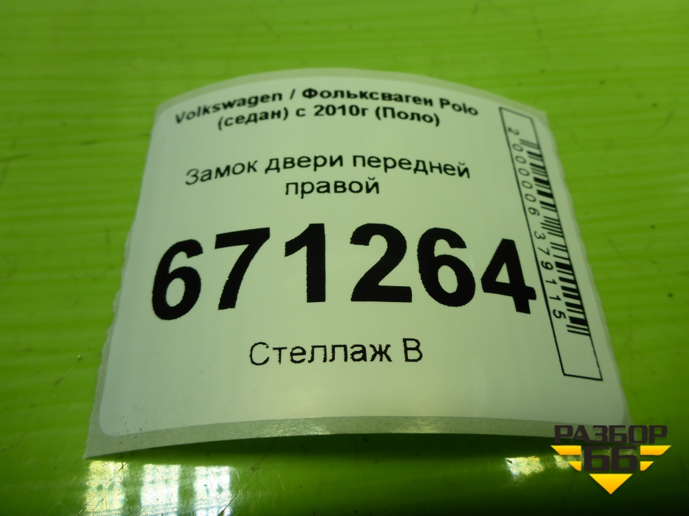 Замок двери передней правой (6RD837016E) для Volkswagen Polo (седан) с 2010г (Поло) в Москве